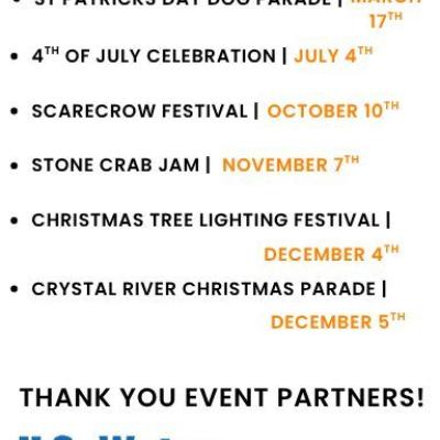 A list of all the events in Crystal River for the year of 2026 starting in January through December.