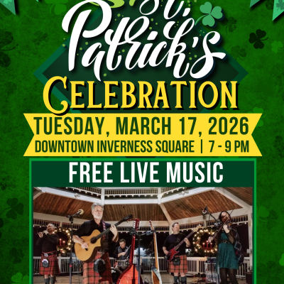 Celebrate St. Patrick’s Day in Downtown Inverness on Sunday, March 15th from 3:00 – 6:00 PM with an afternoon full of family-friendly fun and festive activities. The celebration begins at 3:00 PM and...