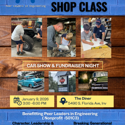 Peer Leaders in Engineering to Host "Bringing Back Shop Class" Car Show and Fundraiser INVERNESS, FL — Peer Leaders in Engineering, a local nonprofit dedicated to youth empowerment, is proud to...
