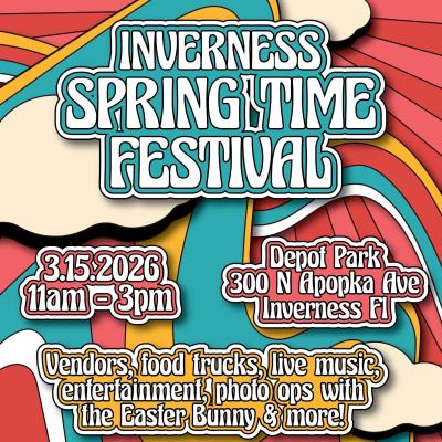 Citrus County!!! Join us for an incredible springtime festival at the depot park in Inverness Florida! We will have free photo ops with the Easter Bunny, live music, food trucks and amazing...