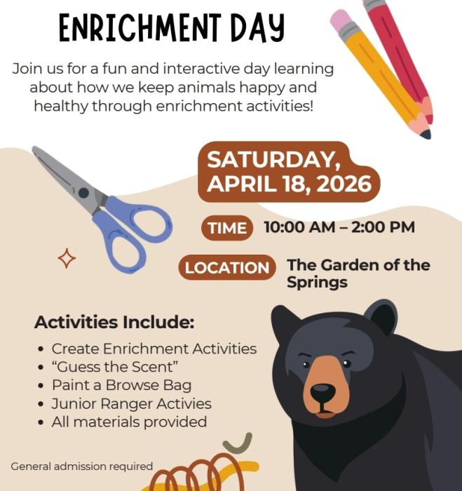 Ellie Schiller Homosassa Springs Wildlife State Park, in cooperation with the Friends of Homosassa Springs Wildlife Park, will host an Enrichment Day event on Saturday, April 18th from 10:00am to 2:00pm in the Garden of the Springs. Have you ever wondered what we do to keep our resident animal ambassador’s lives exciting and interesting? If you answered yes, then this is the program for you! Join us for Enrichment Day to learn about the reasons behind wildlife enrichment and the methods that we use to engage all of the animal’s senses. Enrichment helps wildlife under professional care to use many of the same behaviors that they would in the wild and allows them to make choices in their environment. During this event, the Enrichment Team, staff, and volunteers will have multiple stations throughout the Garden of the Springs to illustrate some of the enrichment items that are used by the team and even have participants make some items for the park.