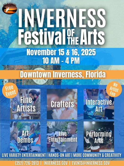 Since 1971, the Inverness Festival of the Arts has been one of Central Florida’s premier juried art shows, celebrated for its commitment to showcasing artistic excellence and creativity. This year, we’re excited to introduce fine crafts alongside the fine arts, creating a broader, more dynamic experience for festival-goers. With this exciting expansion, the event will feature a wide variety of talented artists and craftspeople from across the country.
