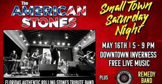 Get ready for an unforgettable evening of FREE live music in Downtown Inverness on the Square on May 16th from 5–9 PM at Small Town Saturday Night!